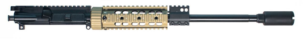 Loading... Please wait...Complete 16" Anonymous Arms 7.62 Forged Upper Receiver with a Carbine Length gas system and a standard barrel. Firefield 6" Carbine FDE Quad Rail Free Float and KAK 5/8x24 Flash Can. All Mil-spec, US Made parts including a nitrade Bolt Carrier Group. Solid steel low profile gas block. HPT (High Pressure Tested) and MPI (Magnetic Particle Inspected) Bolt and Barrel. Extended Latch Charging handle included.